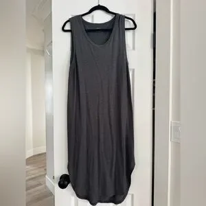 A versatile sleeveless tank dress in charcoal gray. Soft, breathable fabric for all-day comfort. Easy pull-on style with a relaxed fit for effortless wear. Perfect for casual outings or layering.