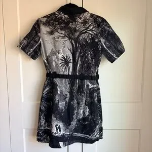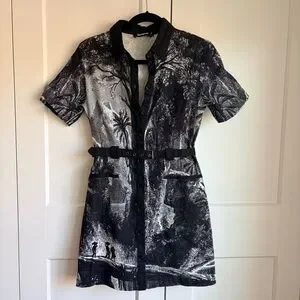 Desigual Black and White Printed Mini Shirtdress Button-Front | M