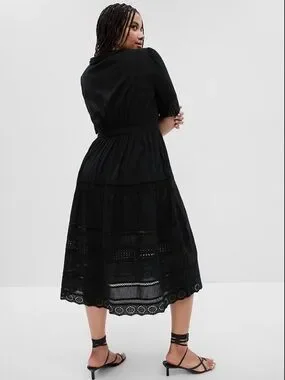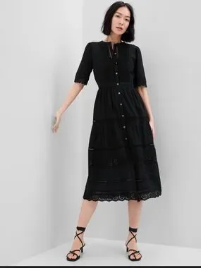GAP Black Lace Button-Front Midi Dress