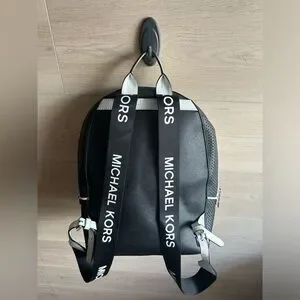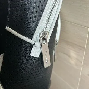 •Prominent black and white branded logo shoulder straps.