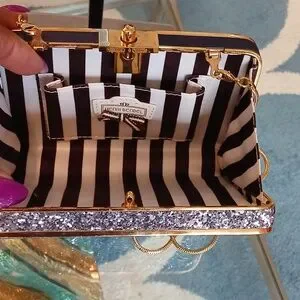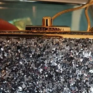 henri bendel Party Box Silver Glitter Clutch with Gold Trim