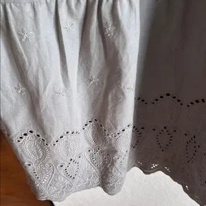 Classic gray maxi skirt with a feminine eyelet hem. Elastic waistband for comfortable, all-day wear. Lightweight fabric drapes beautifully and pairs easily with tops and jackets. Versatile gray color for everyday styling.