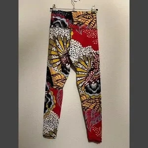 Vibrant leggings with a bold, multicolor pattern. Perfect for workouts or casual wear.