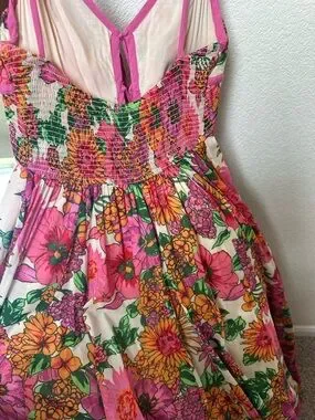 Perfect for Easter I will ship ASAP! Vibrant pink floral maxi with a flowing skirt. Strappy V-neck and adjustable straps. Lightweight, breezy fabric with all-over floral print. Feminine, easy-to-wear summer style.