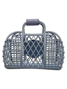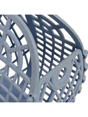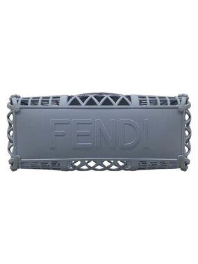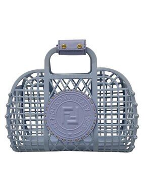 This is an authentic Fendi Tote Basket Small in light blue leather. The structured basket-weave design features the iconic Fendi logo hardware and gold-tone accents.