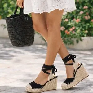 Vince Camuto Alindra Espadrille Wedge Black Excellent Size 6.5