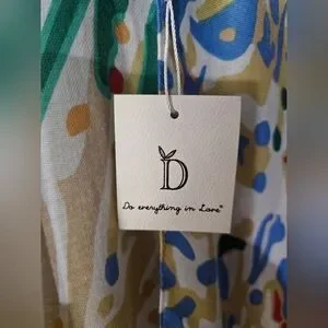 Bright and airy kimono/swim coverup. Features abstract patterns in blue, red, yellow, and green. Ideal for sunny beach days.