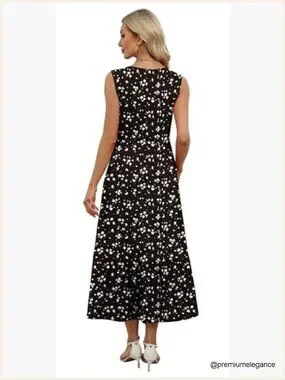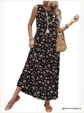 Sleeveless Maxi Dress with Pockets, A-Line Flowy Summer Casual