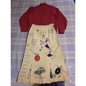 Vintage 1959 Senior Cord Skirt And Jacket Set Hand Drawn High School 50s 60s