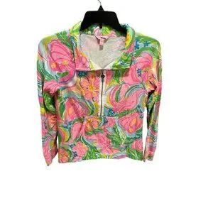 Lilly Pulitzer Women's Large Skipper Popover Multi So A Peeling UPF 50+ 1/2 Zip
