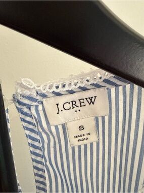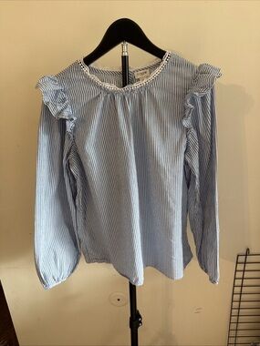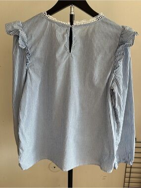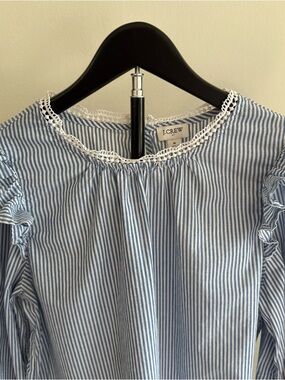 J. Crew Light Blue & White Striped Ruffle Shoulder Blouse