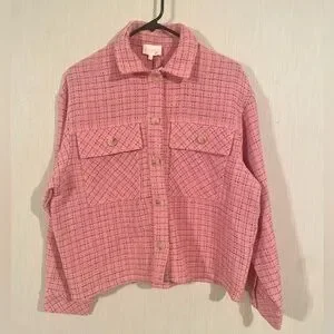 Entro Pink Tweed Button Up Shirt Jacket Shacket Barbiecore Feminine Size Medium