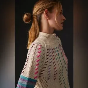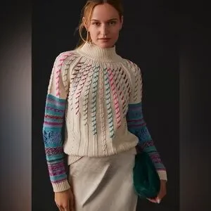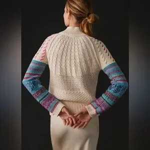 Anthropologie Wendy Wurtzburger Stitch Mix Fisherman Crewneck Sweater Small NWT