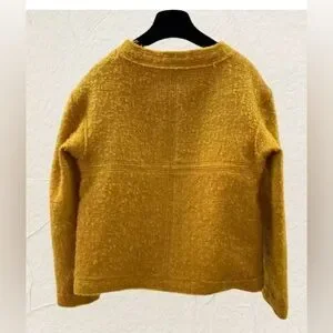 Beautiful and chic Chanel vintage bouclé knit crewneck in a warm mustard tone. Easy to layer and pairs well with denim or tailored pieces.