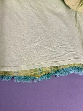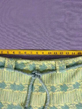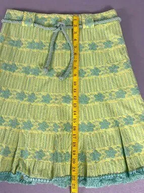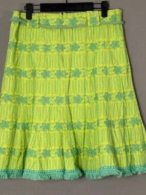 Nanette Lepore Aqua Neon Green Textured Skirt Fringe Hem Belted Size 8 Lined