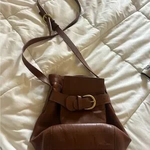 Coach Brown Leather Belt-Accent Bucket Crossbody