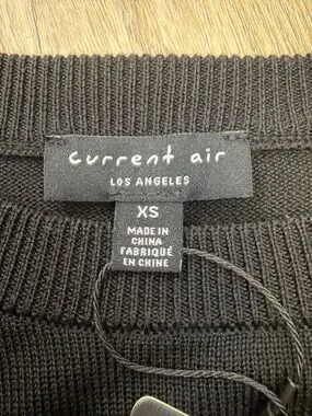 Current Air Black Long-Sleeve Top with Sheer Patterned Sleeves
