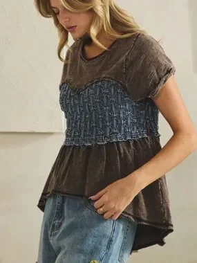 🎉 OLI & HALI “ SUMMER “ OLI AND HALI WASHED SMOCKED PEPLUM TOP 66A