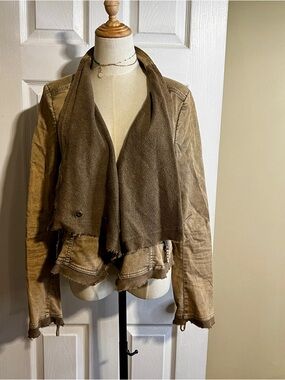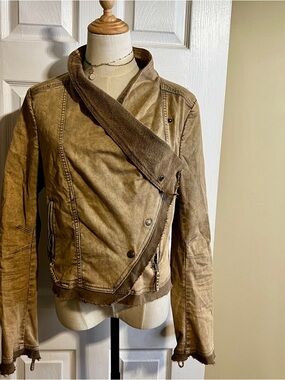 *Wms Free People Cotton Knit Distressed Cropped Moto Military Jacket Tan M