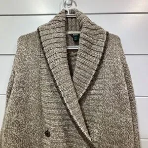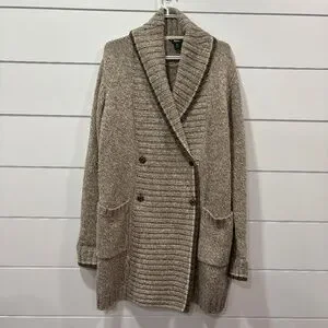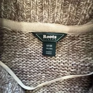 Roots women's oatmeal and white knit double breasted wool blend sweater size M