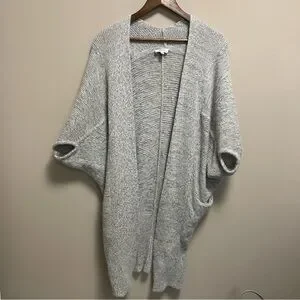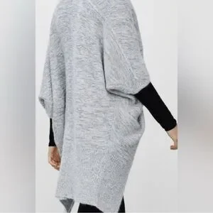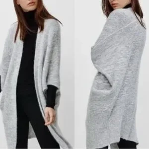 Elegant heather gray Javier cocoon cardigan by Aritzia’s Babaton. Soft knit texture made from wool, alpaca, mohair and polymide. Draped open-front design and dolman sleeves. Oversized XXS so this cardigan easily fits up to a women’s large. Ideal for layering. This classic design will stand the test of time.