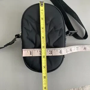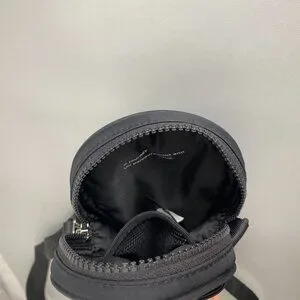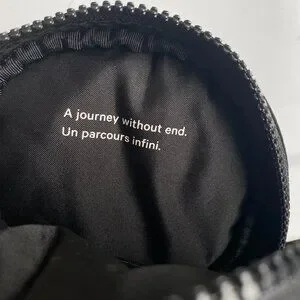 Lululemon Future Legacy Team Canada Crossbody Belt Bag, Black, features quilted Canadian Maple Leaf on Front, Top Main zip compartment, holds your phone & other essentials, mesh pockets, back side exterior slip pocket, versatile function has sleeve for your belt to wear around your waist, removeable, adjustable, durable nylon crossbody strap, oval shape. In excellent preowned condition, from a smoke free/pet free home. I have another one that I simply could not do without, I use for walking, hiking, travel, concerts, festivals & everyday use.