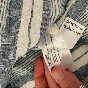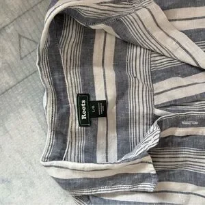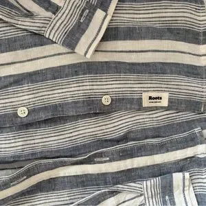 Roots Navy and White Striped Button-Down Linen Shirt