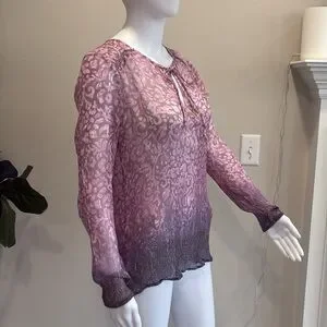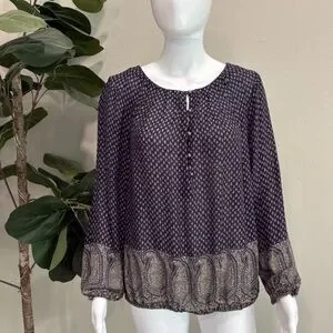 Lucky Brand Sheer Crinkled Print Peasant Tunic Top Bundle Size M Long Sleeve Y2K