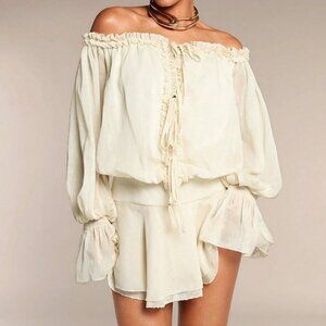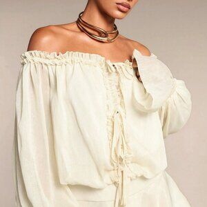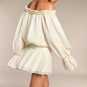 Khaki Casual Women's Off Shoulder Flare Sleeve Ruffle Hem Dress