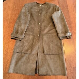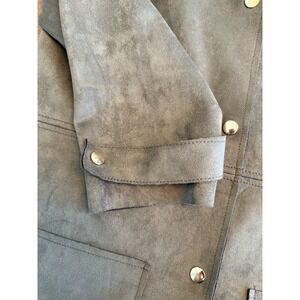 Zara Faux Suede Jacket Women's Size Small Olive Brown Snap Front WB Collection