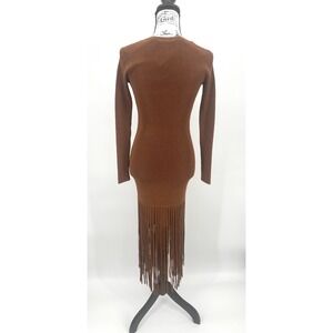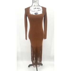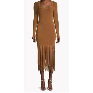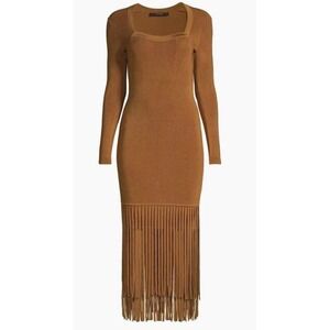 Toccin Mila Fringe Long Sleeve Midi Dress Size XS Bronze Knit Anthropologie NWT