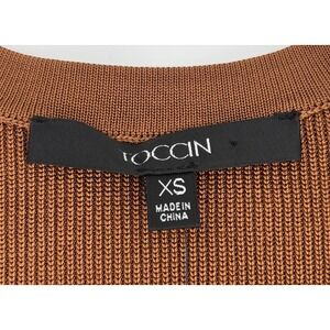 Elevated and dramatic, this Toccin Mila Fringe Long Sleeve Midi Dress features a sleek, body-skimming knit silhouette with statement fringe detailing at the hem. Finished in a rich bronze tone, this Anthropologie-sold style blends modern sophistication with movement and texture. Brand new with original tags.