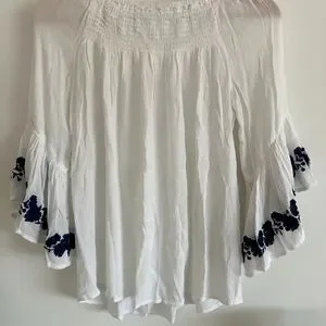 Lightweight white boho peasant blouse with the prettiest black embroidered sleeve details 💙