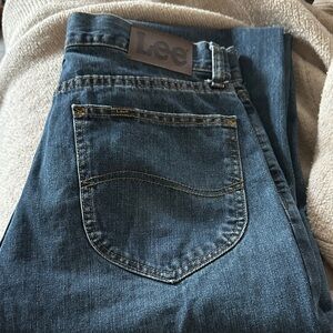 Relaxed-leg Lee jeans in a rich blue wash. Classic five-pocket style with visible stitching. Durable denim for everyday wear. Timeless, easy-to-style blue color.