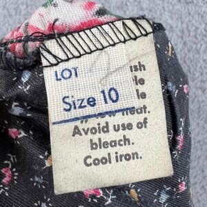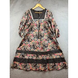Vintage 70s Floral Paisley Print Lace Up Midi Dress Multi Puff Sleeve 10