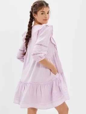 AE Pintuck Ruffle Babydoll Mini Dress Lilac Ruffle Tiered Dress Spring Cottage