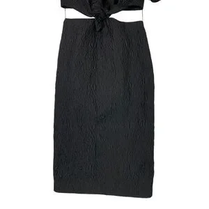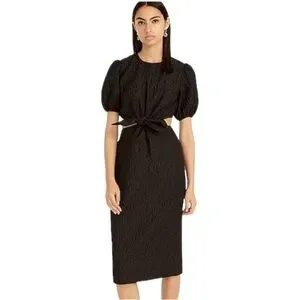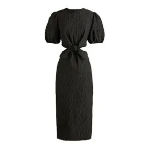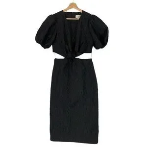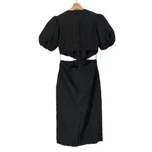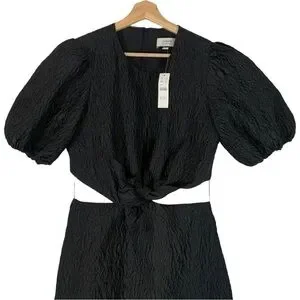 NEW with tags J. Crew Collection Cutout Dress in Textured Organza Black Size 6. Features: Black textured organza fabric. Short Puff Sleeves. Crew collar line. tie front detailing. Cutout back. Zip closure.