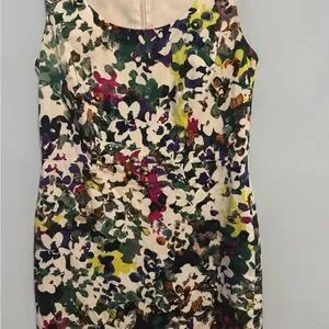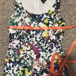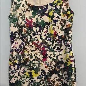 Ann Taylor Floral Midi Dress in White, Green, Purple, Yellow