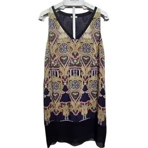 Leifsdottir Anthropologie Silk Paisley Shift Dress 10 Sleeveless Boho Women's