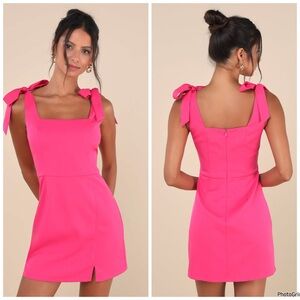 Lulus dress, Lulu’s mini dress, fuchsia dress, pink mini dress, tie strap dress, square neck dress, A-line mini dress, summer dress, spring dress, vacation dress, date night dress, party dress, feminine dress, trendy dress, bright pink dress