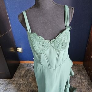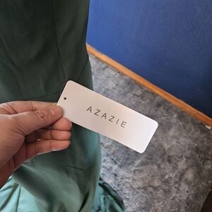 Azazie Camellia Dark Green Corset Maxi Dress womens size medium nwt