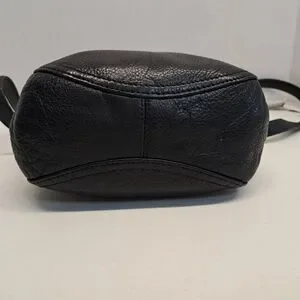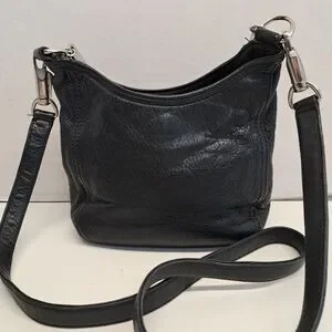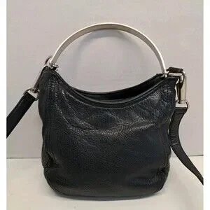 Anee Klein II Black Leather Handbag With Silver Metal Handle And Shoulder Strap