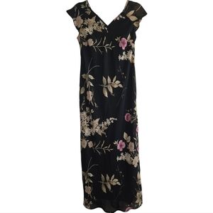 Vintage 90s All That Jazz Moody Dark Floral Midi Dress Small Double V-neckline
