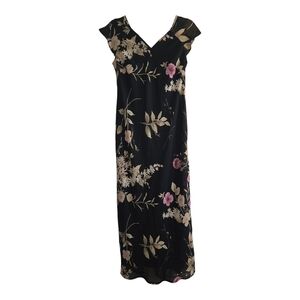 Vintage All That Jazz Moody Dark Floral Midi Dress Small Double V-neckline