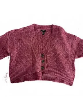 Forever 21 Berry Maroon Button Crop Cardigan- Size Small