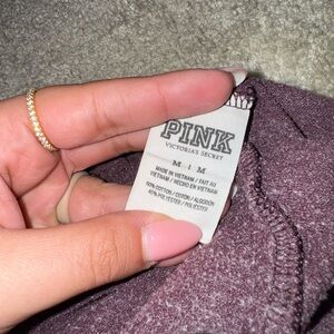 Soft stretch fabric for a snug fit. Elastic waistband for easy wear. PINK logo at hem for subtle branding. Lightweight and breathable for workouts or lounging.