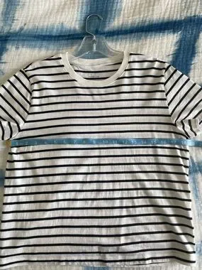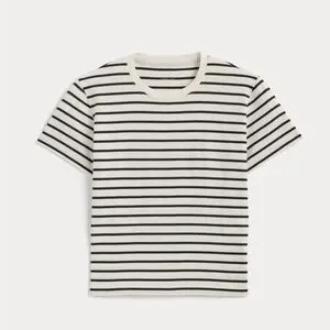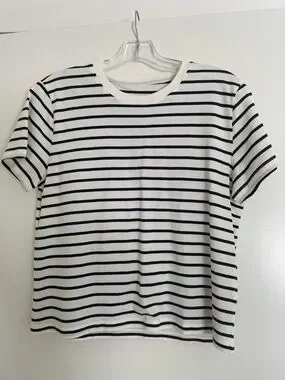 Everlane THE BOX-CUT TEE IN ESSENTIAL COTTON Bone & Black Stripe