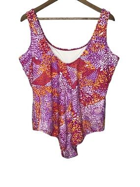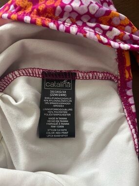 Catalina Women's Swimsuit Pink and Orange Geometric Pattern Beach, Tropic, 3X