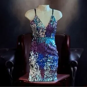 Fashion Nova Stunning purple and silver sequin dress. Perfect for parties and special occasions. gently used, but no visible signs of wear, no missing sequins or pulls. Fully lined, Adjustable spaghetti straps. Hook and eye closure with back zipper. Shimmery under lights or under the moon ! Great dress for Vegas , . Has stretch. SZ S s as er images for various measurements . Feel free to ask questions !