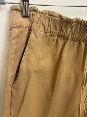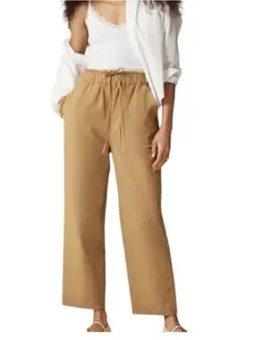 J.Crew NWT Linen Blend Wide Leg Crop Pants Tan Drawstring Elastic Waist M